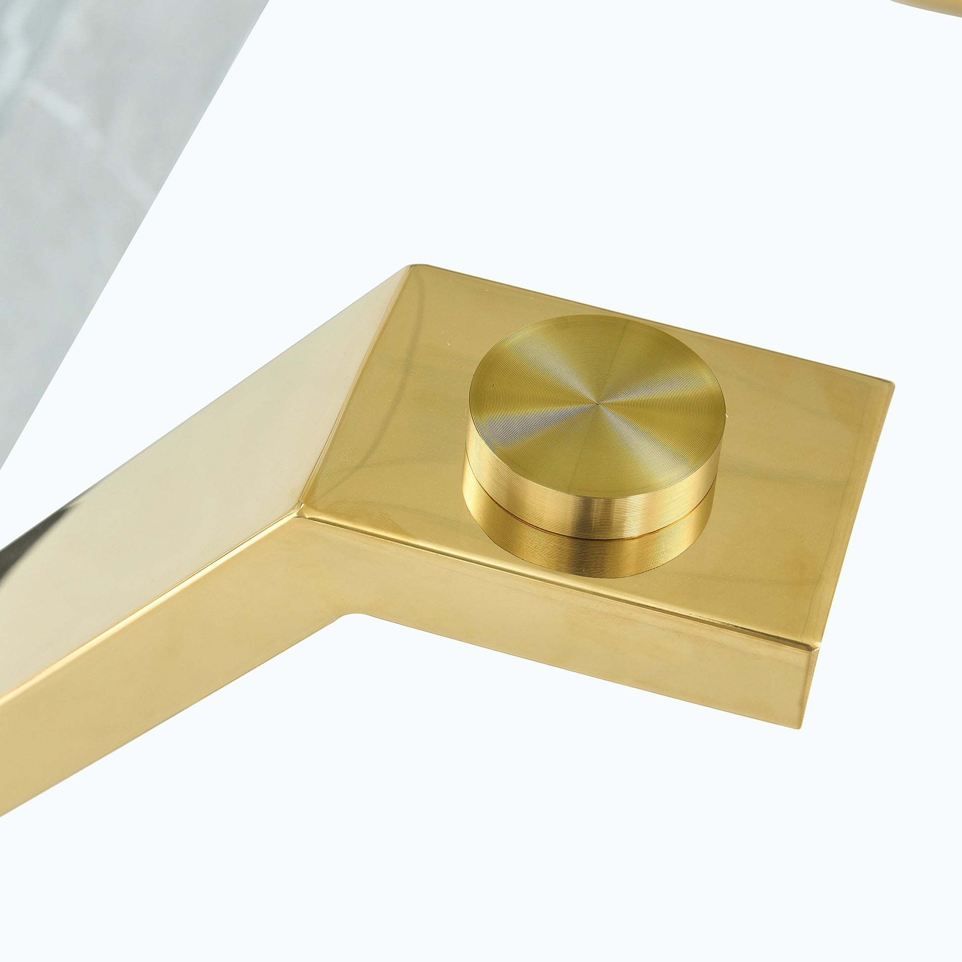 Main materials: Glass desktop+MDF +Metal, Legs: MDF+Plated Metal