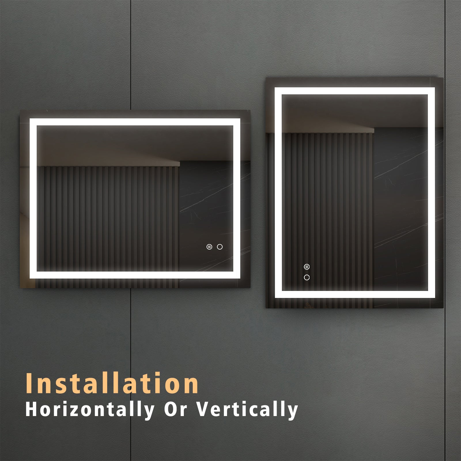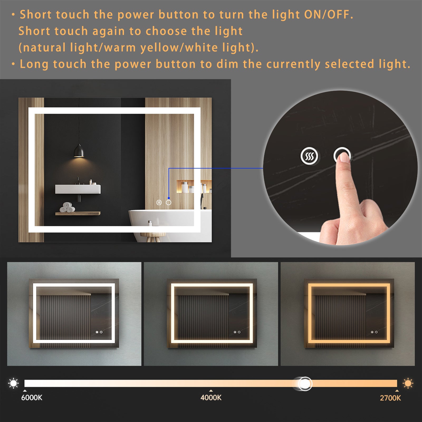 LED Mirror with Touch Buttons control; Anti-Fog LED bathroom Vanity Mirror