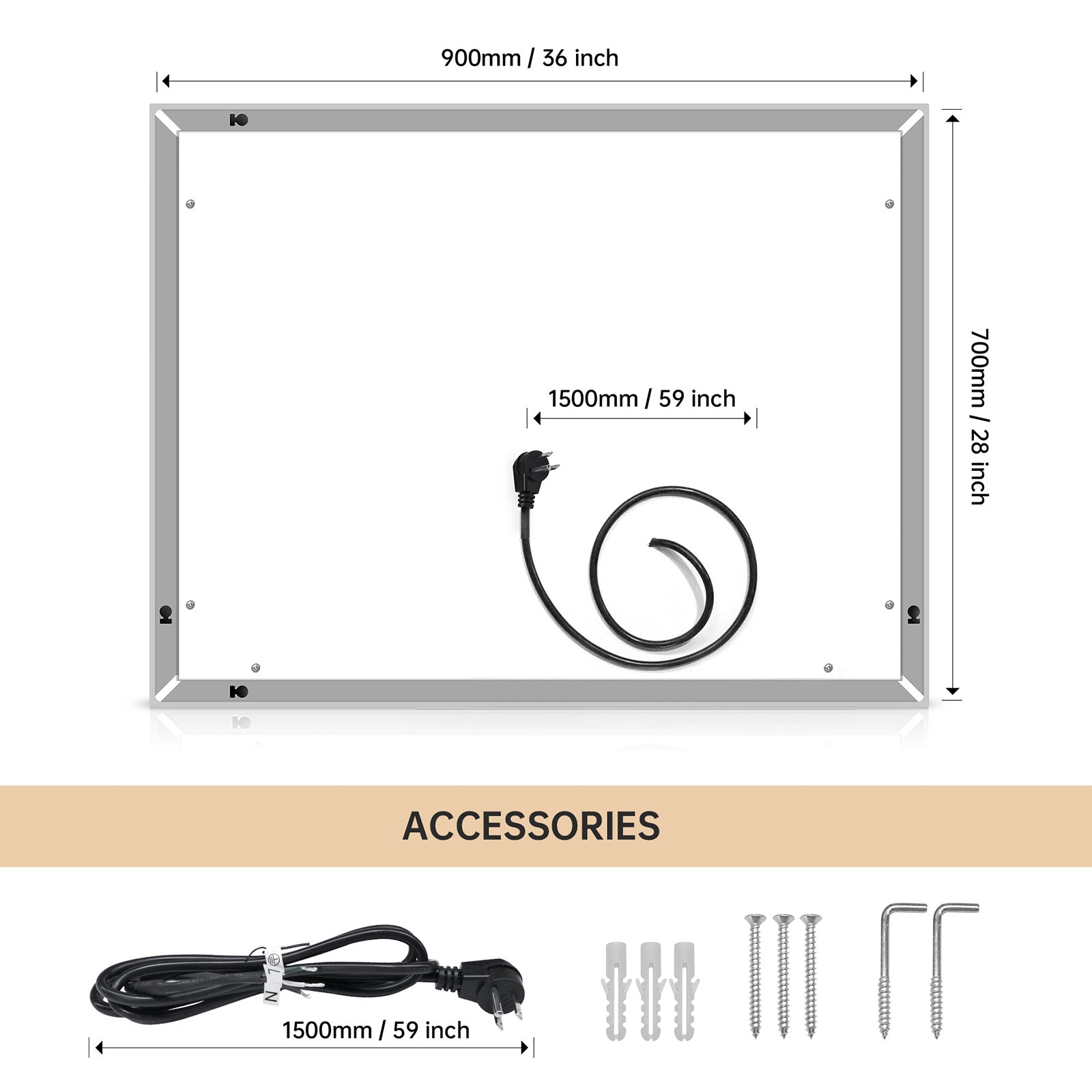 28'*36' LED Lighted Bathroom Wall Mounted Mirror with High Lumen+Anti-Fog Separately Control+Dimmer Function