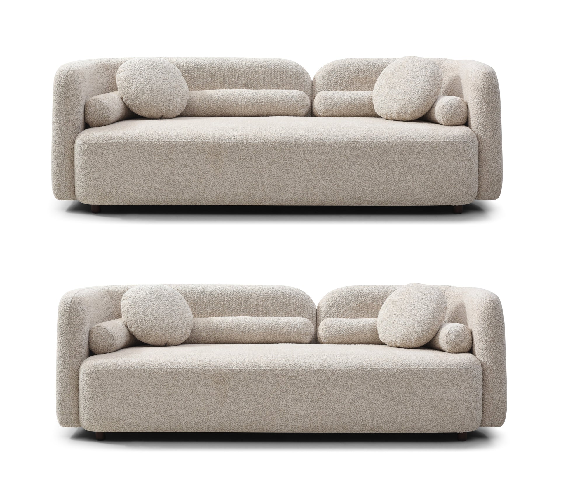 2PS, Pieces Luxury Modern Couch for Living Room, Boucle Fabric Upholstered Comfy Couch for Apartment Home Office, 3 Seater, Light Beige