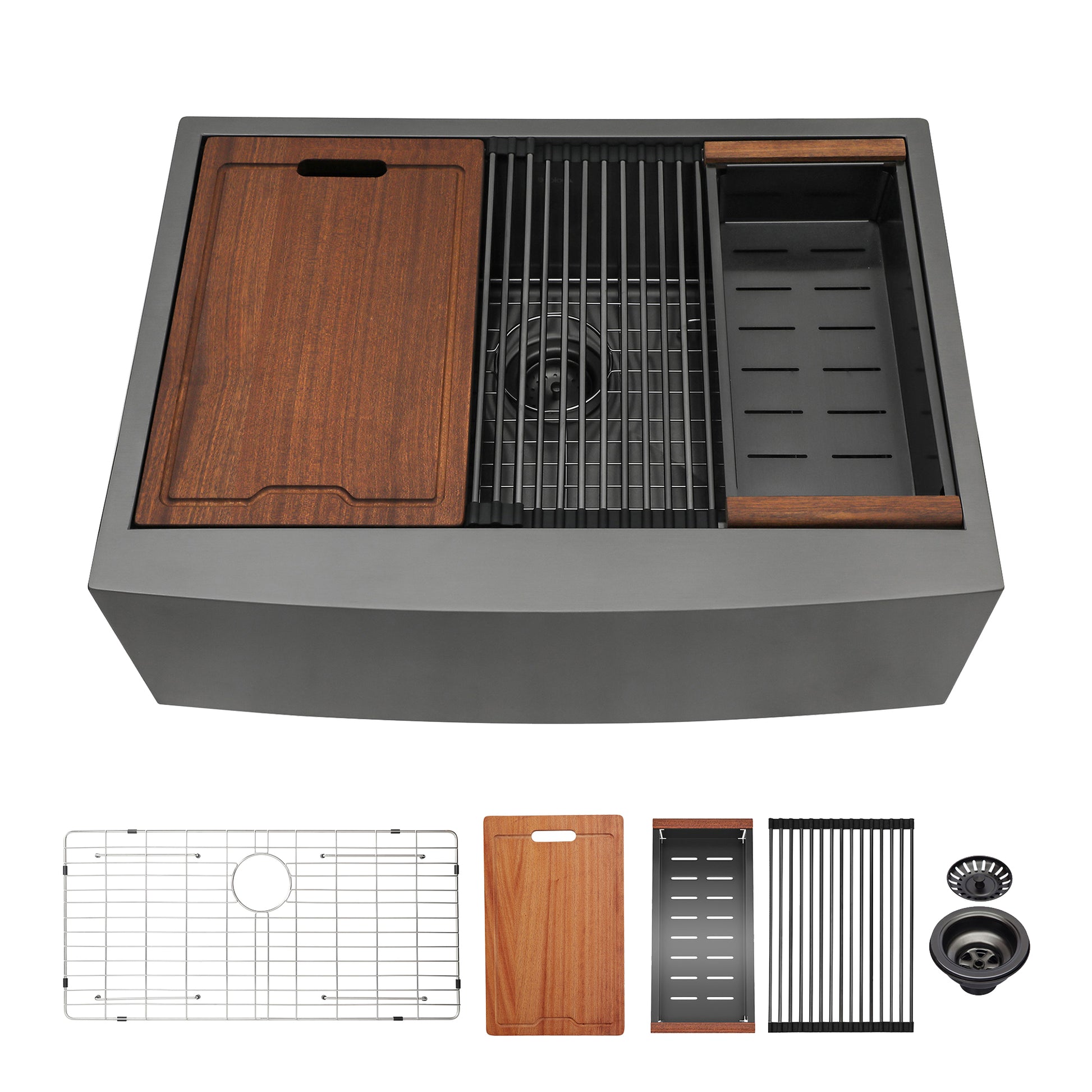 33x22x10'Farmhouse Apron Single Bowl Stainless Steel Kitchen Sink with Workstation