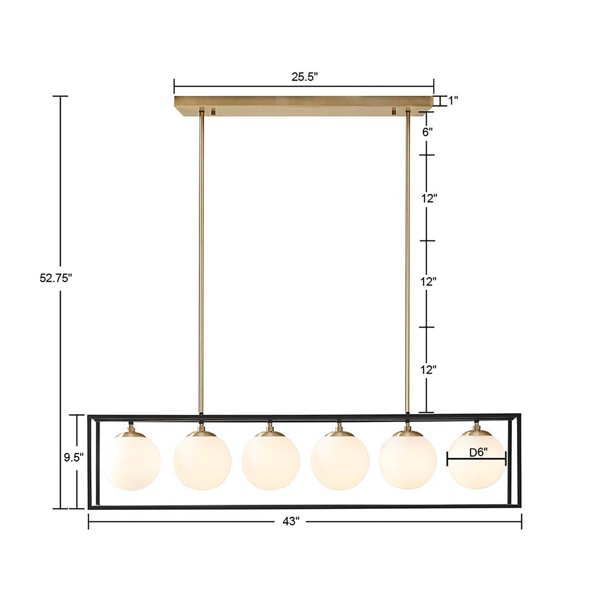 Helena 6-Light Frosted Glass Globe Linear Chandelier